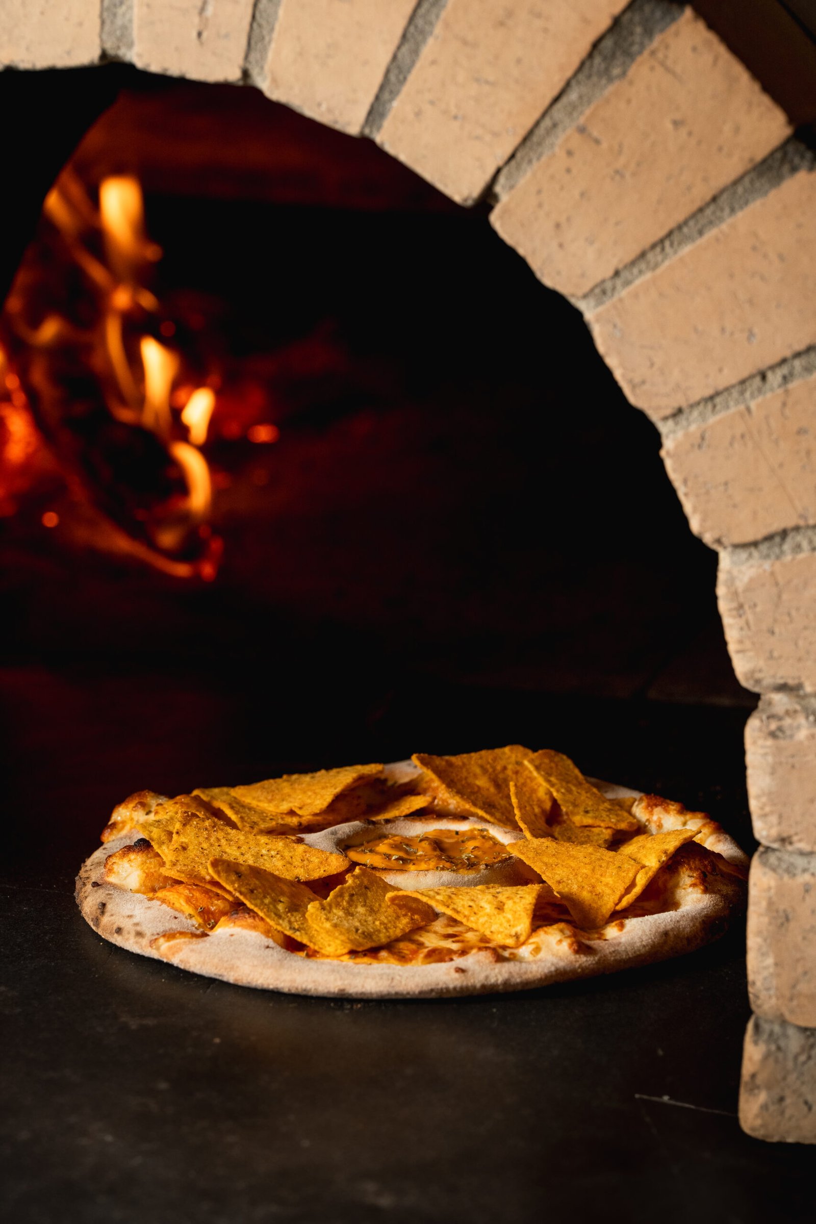 Tomate, mozzarella, Queijo mexicano, Doritos e orégão.