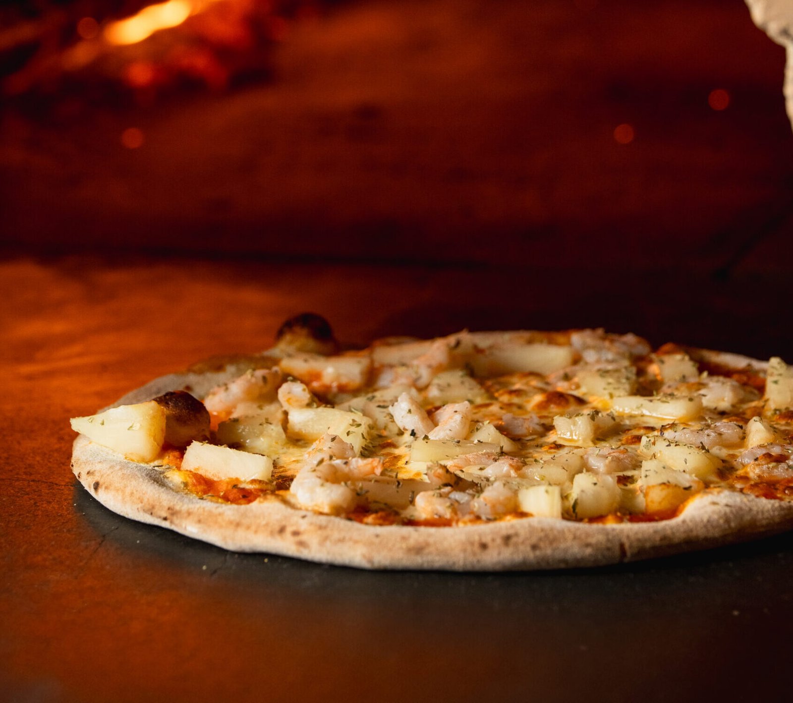 Tomato, mozzarella, pineapple, shrimp and oregano