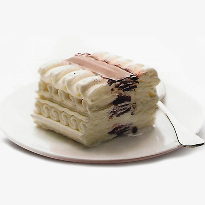 Gelado de nata entre láminas de chocolate.