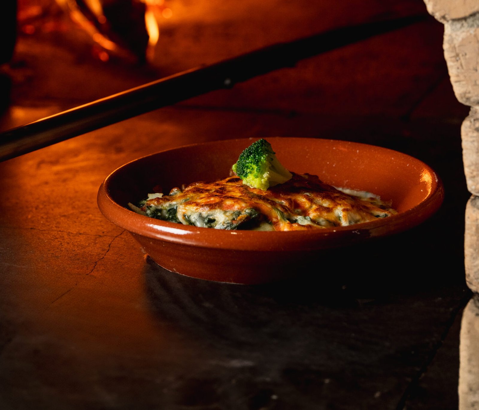 Massa de espinafres, bróculos, espinafres, parmesão e bechamel.